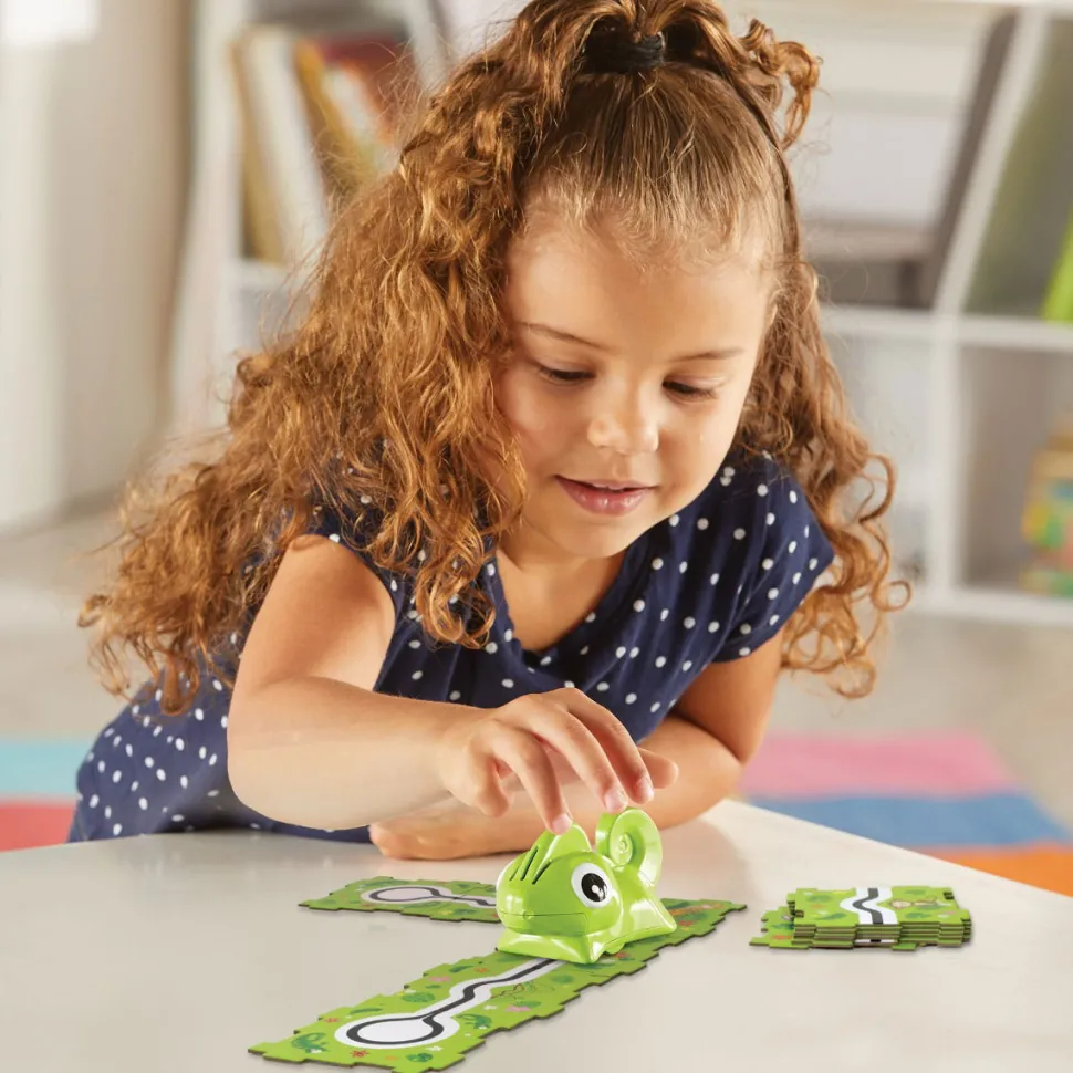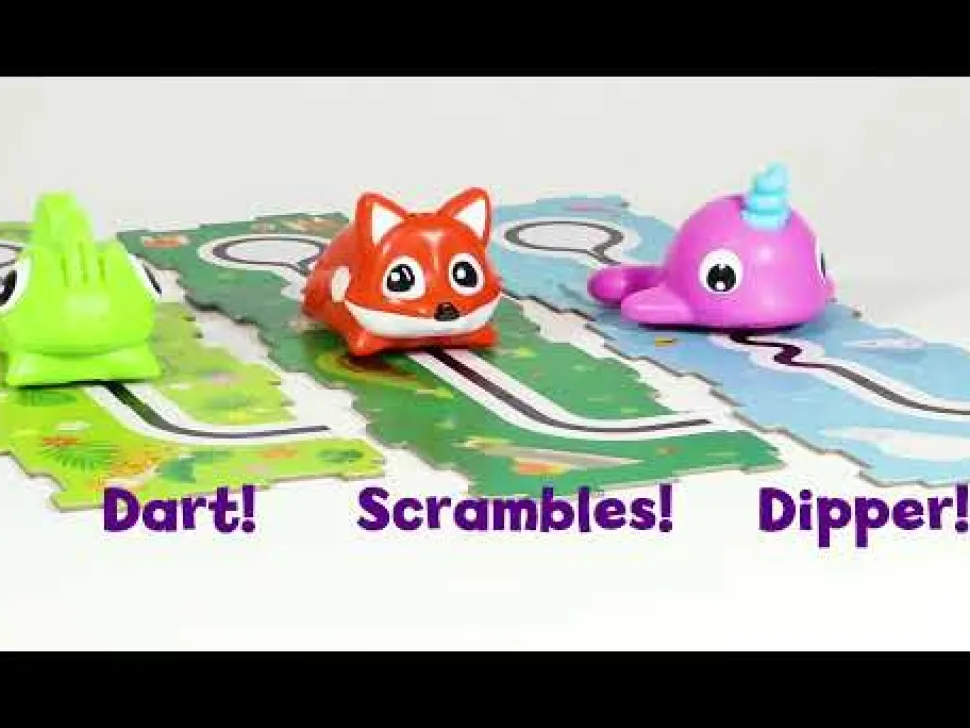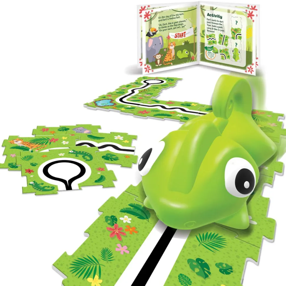 Dieser Kleine Tierfreund Kann Einer Schwarzen Linie Folgen, Sobald Ihr Den „Ein“-Knopf Eingeschaltet Habt.Dein Kind Kann Die Fahrbahnen So Auslegen, Dass Die Schwarze Linie Durchgehend Und Ununterbrochen Ist, Und Dann Folgt Das Tier Der Linie.Die Logik Beim Erstellen Eines Wegs Mit Rechts, Links Und Gerade Ist Also Dieselbe Wie Beim Codieren Mit Blocken Auf Einem Computer Oder Tablet.