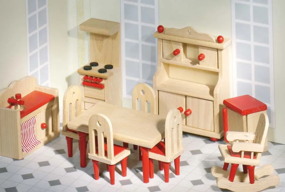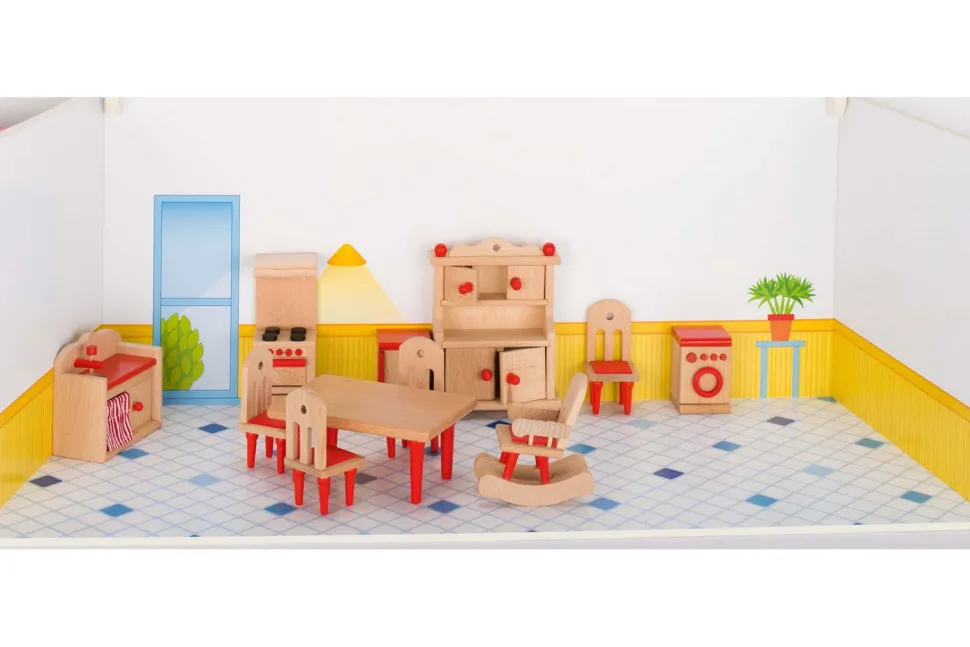 Wenn Dein Kind Ein Puppenhaus Hat, Braucht Es Naturlich Auch Einige Mobel, Dass Sich Spiele Entwickeln Konnen. In Diesem Set Gibt Es Mobel Für Die Einrichtung Einer Kuche. Das Set Ist Schlicht, Besteht Aber Aus Einer Voll Ausgestatteten Kuche Mit Esstisch Und Sitzgelegenheiten.