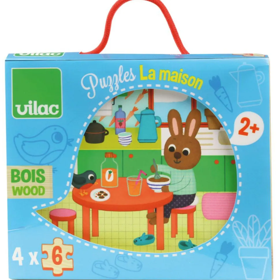 Im Puzzlekoffer Sind 4 Puzzeln Enthalten. Die Puzzle Zeigen Das Wohnzimmer, Die Kuche, Das Badezimmer Und Das Schlafzimmer Bei Einem Susen Kleinen Kaninchen. Jedes Puzzle Besteht Aus 6 Teilen.