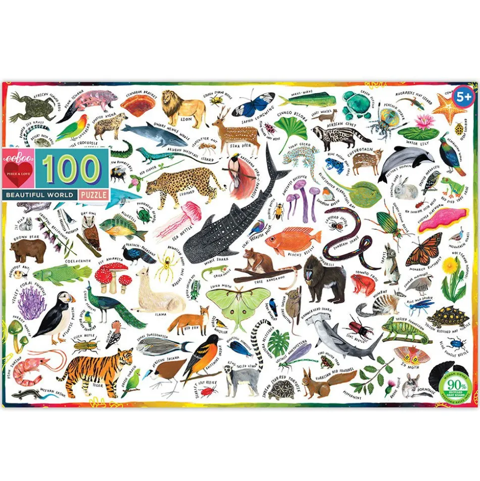 Puzzle Aus 100 Teilen Mit Verschiedene Tieren Unserer Welt.