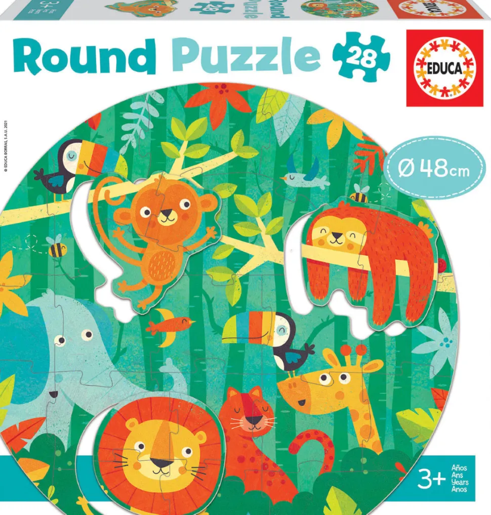 Dieses Schone Puzzle Von Educa Zeigt, Dass Puzzles Und Ihre Teile Nicht Unbedingt Viereckig Sein Mussen. Hier Bekommt Dein Kind Ein Rundes Puzzle Mit Grosen Teilen In Lustigen Formen. Einige Dschungeltiere Haben Sogar Teile, Die Ihrer Form Folgen.
