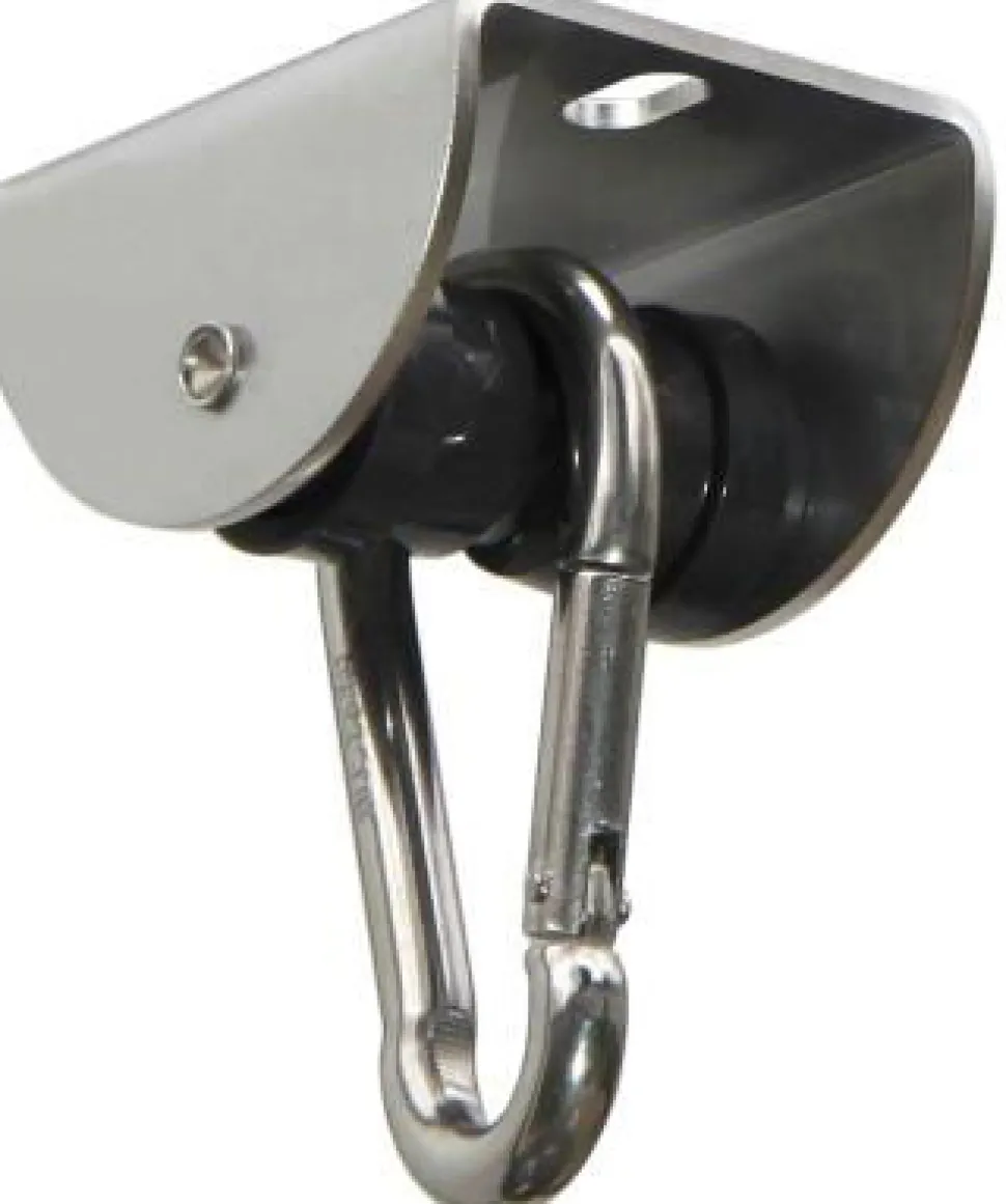 Der Karabiner Lasst Sich Im Handumdrehen Befestigen Und Hangt Dann Sicher Und Gut Fest. Es Ist Für Das Hin- Und Herschwingen Ausgelegt Und Bremst Schrage Bewegungen Von Einer Seite Zur Anderen Automatisch.