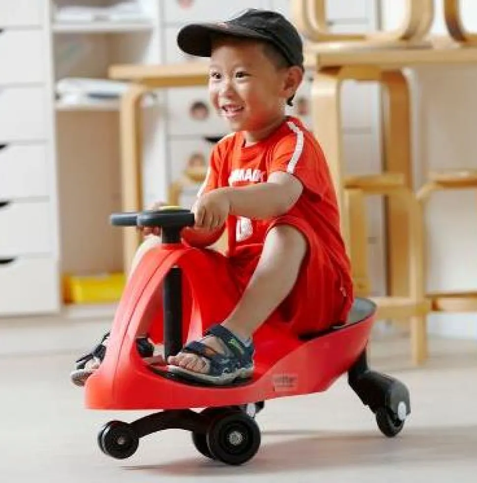 Es Ist Wie Eine Kombination Aus Go-Kart Und Skateboard, Doch Ohne Pedale Oder Gangschaltung. Das Batterielose Auto Ist Bereit Für Neue Abenteuer. Naturlich Kann Es Sein, Dass Der Fahrer Zwischendurch Brennstoff In Form Von Obst Oder Kuchen Benotigt. Das Schwingauto Fahrt, Indem Das Kind Die Fuse Auf Die Fusablage Stellt, Sich Leicht Nach Vorne Lehnt, Den Lenker Bewegt Und Los Geht Es. Bis Zu 10 Km/H Kann Das Schwingauto Erreichen. Es Sind Schwerkraft, Zentrifugalkraft Und Reibung, Die Das Auto Vorwarts Treiben.