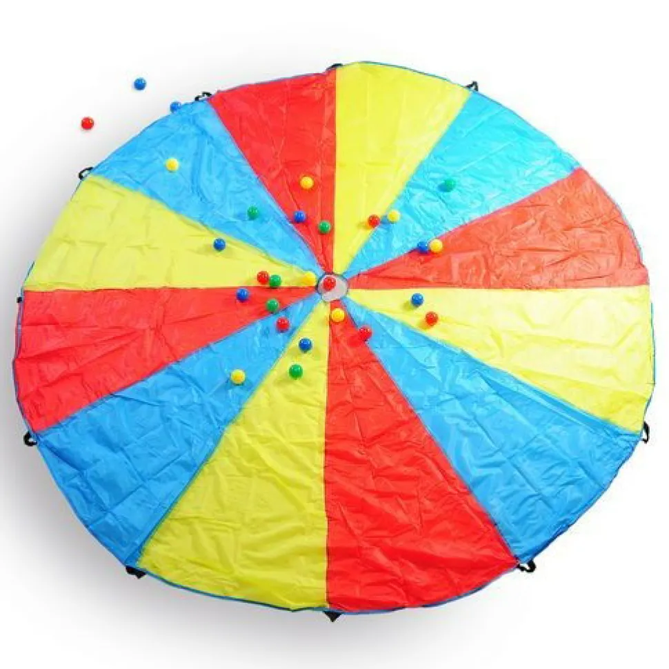 Das Schwungtuch Hat 12 Griffe. Die 24 Bälle Springen Und Tanzen, Wahrend Die Kinder Gemeinsam Verhindern, Dass Sie Herunterhupfen. Lauft Abwechselnd Unter Dem Schwungtuch Durch Oder Legt Euch Darunter Und Fuhlt, Wie Die Bälle Daruber Hopsen.