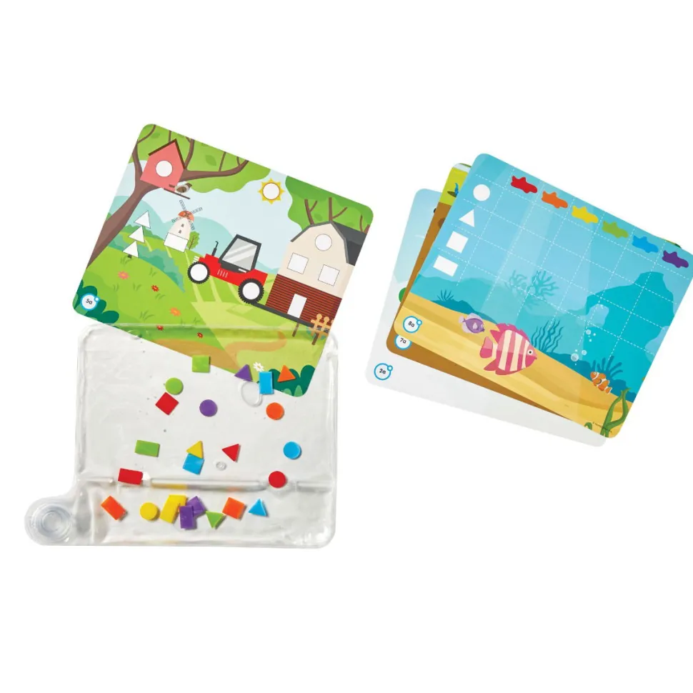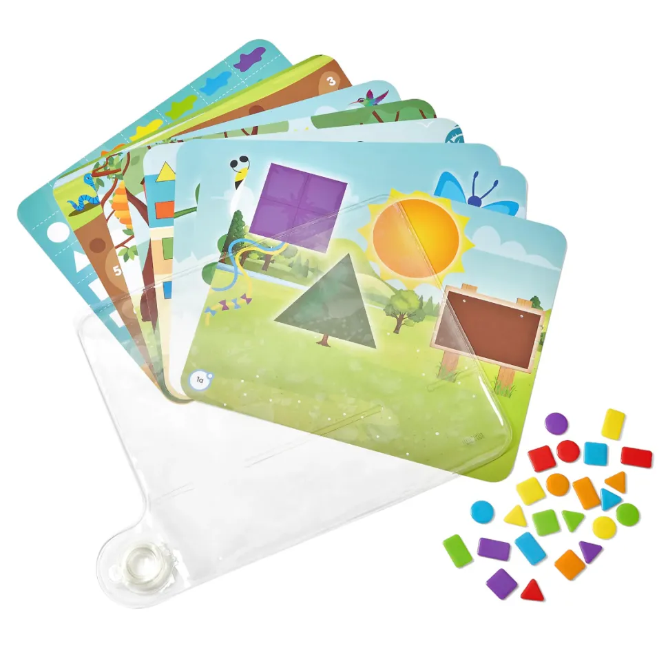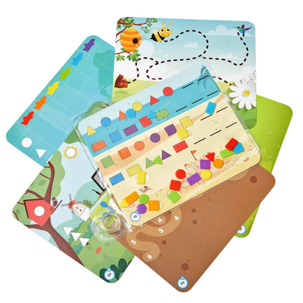 Das Set Enthalt 8 Tafeln Mit Lustigen Aktivitaten Auf Beiden Seiten.Verteile Mit Den Fingern Die 24 Kleinen Geometrischen Formen An Den Richtigen Stellen.Oder Fuhre Sie Durch Den Weg Der Tafel.Die Tafel Wird Auf Der Ruckseite Des Kissens Eingelegt, Damit Sie Nicht Mit Den Flussigkeiten In Kontakt Kommt.