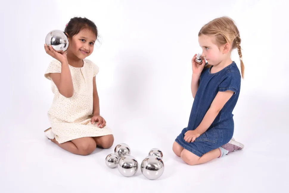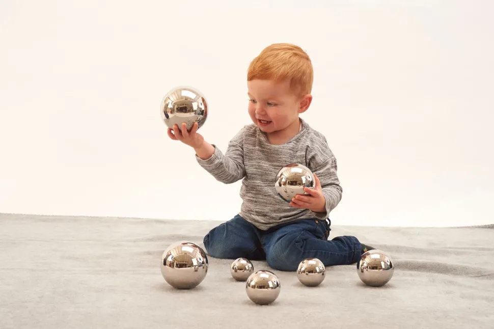 Ihre Reflektierende Oberflache, In Der Sich Das Gesicht Des Kindes Auf Lustige Weise Spiegelt, Die Einzigartigen Gerausche In Jeder Kugel Und Das Unterschiedliche Gewicht Der Kugeln Machen Sie Zu Einem Vielfaltigen Spielzeug.
