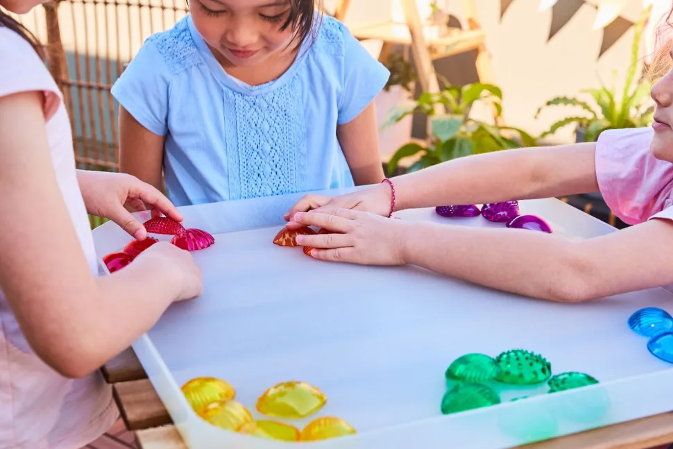Man Kann Auf Vielerlei Weise Damit Spielen – Inkombination Mit Sand, Wasser, Mit Verschiedenen Arten Von Spielsand Oder Kinetic Sand – Oder Auf Einem Leuchttisch. Du Kannst Die Farben Vermischen Und Uber Die Verschiedenen Oberflachen Sprechen. Du Kannst Eine Ruhige Atmosphare Schaffen, Indem Du Die Kinder Bittest, Sie Ohne Zu Schauen, Zu Sortieren. Zahle Die Muscheln Auf Englisch, Sprecht Uber Grosen, Bildet Muster – Es Gibt Unzahlige Moglichkeiten Mit Den Schonen Taktilen Muscheln .