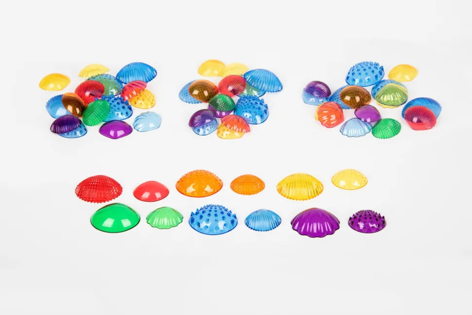 Man Kann Von Diesen Schonen Transparenten Muscheln Kaum Seine Finger Lassen. Die 108 Muscheln Haben 6 Verschiedene Oberflachen Und Sind In 2 Grosen Erhaltlich. Wenn Dein Kind Damit Spielt, Wird Dabei Dessen Tastsinn Angeregt.