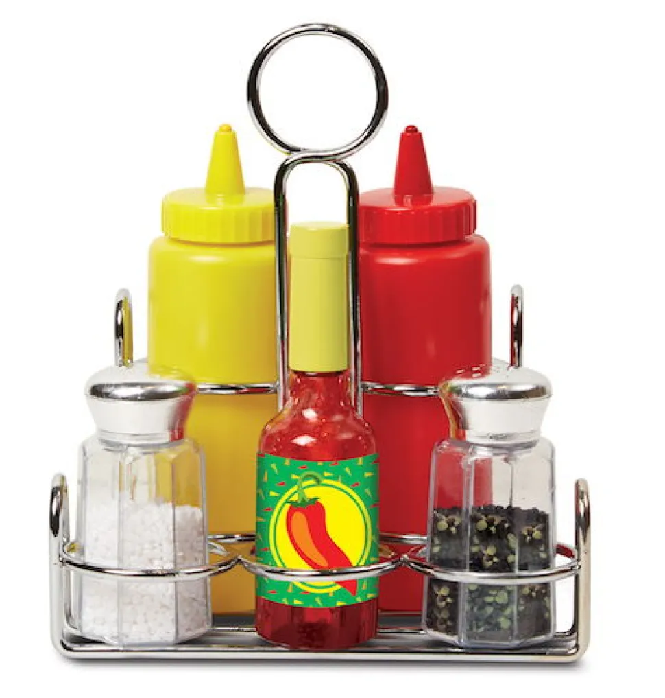 Schone Erganzungen Für Die Spielkuche Von Kleinen Leckermaulern.Ketchup, Senf, Chilisauce, Salz Und Pfeffer. Das Beste Ist, Dass Der Inhalt Der Flaschen Richtig „Spritzt“ – Es Sind Zwar Schnure, Aber Es Sieht Verdammt Echt Aus. Die Gerausche Und Das Aussehen Sind Einfach Perfekt. Ab 3 Jahren.