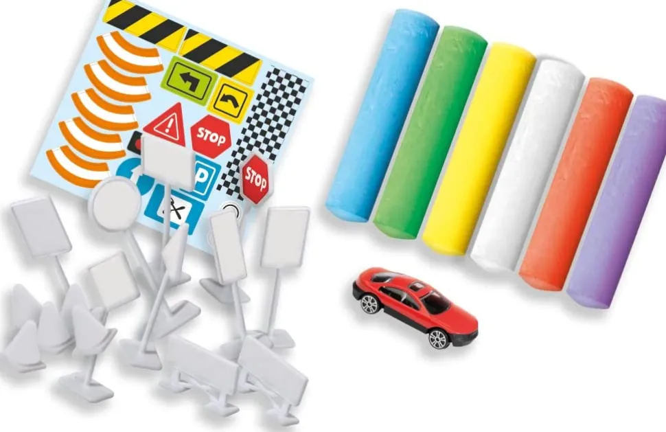 Mit Diesem Set Konnt Ihr Eure Ganz Eigene Fahrbahn Aufzeichnen Und Die 15 Verkehrszeichen Und Verkehrsleitkegel Nach Belieben Aufstellen. Naturlich Ist Ein Kleines Auto Auch Dabei, Das Die Strecke Testen Kann.
