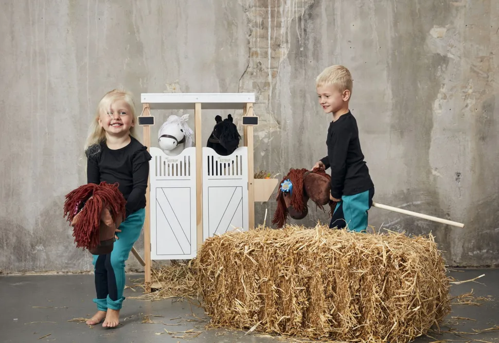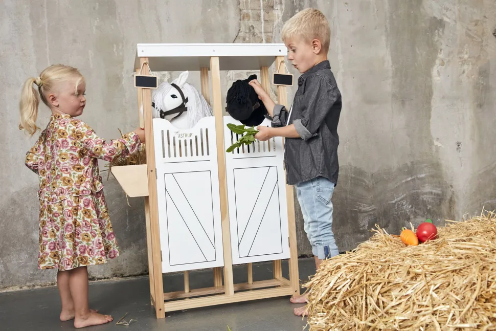 Stell Dir Vor, Du Hast Deinen Eigenen Pferdestall. Im Stall Ist Platz Für Zwei Steckenpferde. Die Tur Macht Es Einfach, Rein Und Raus Zu Kommen.