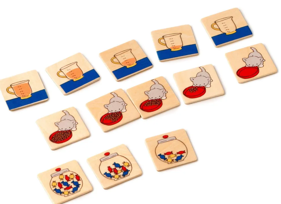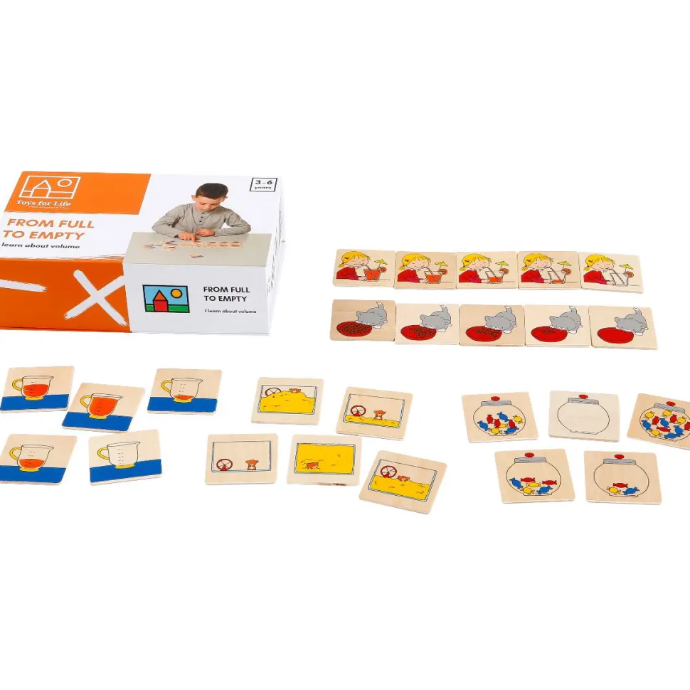 Dieses Spielset Aus Stabilem Holz Veranschaulicht Mengen Und Volumen, Wenn Dein Kind Die Kartchen In Die Richtige Reihenfolge Legt.