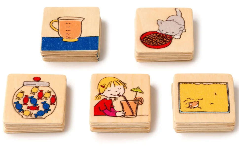 Das Spiel Enthalt 25 Holzkartchen Mit Bildern Mit Den Masen 5 X 5 Cm.