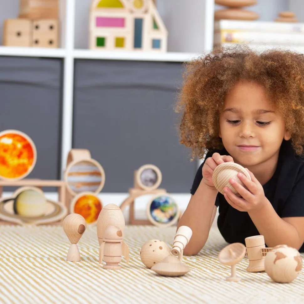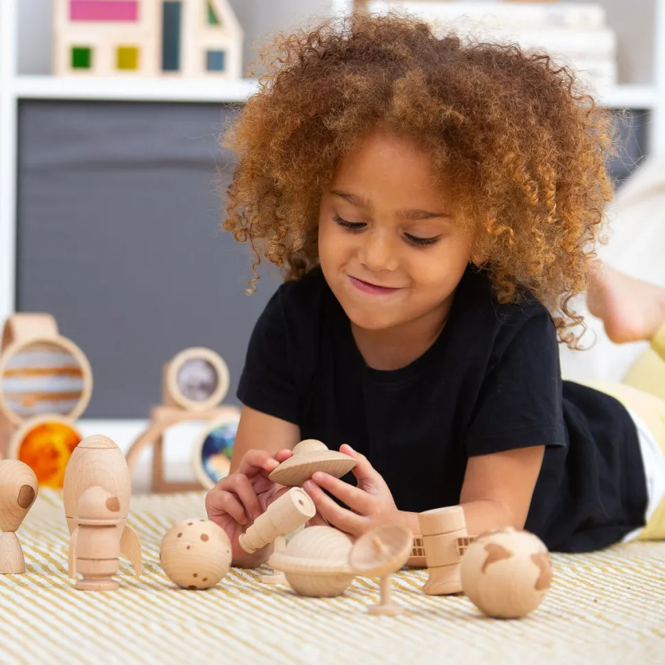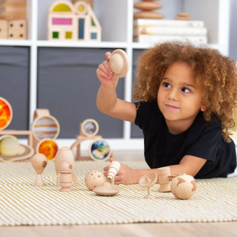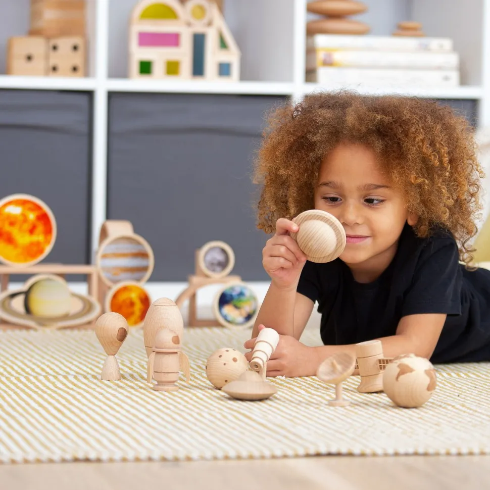 Ladt Zu Gesprachen Uber Raumfahrt Ein, Wobei Der Wortschatz Deines Kindes Gestarkt Wird.Dein Kind Wird Die Feinen Details Der Figuren Mit Dem Teleskop Konzentriert Studieren.Ihr Konnt Euch Uberlegen, Ob Ihr Die Holzfiguren Bemalen Wollt.