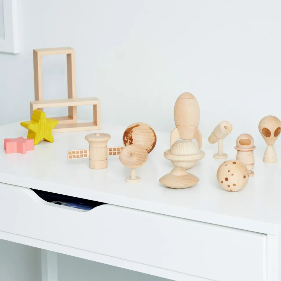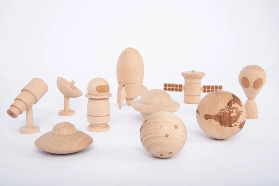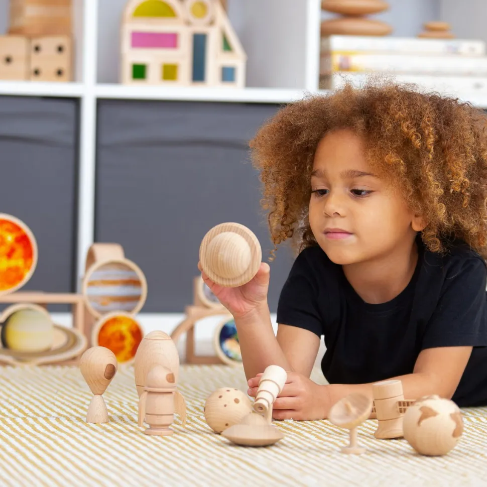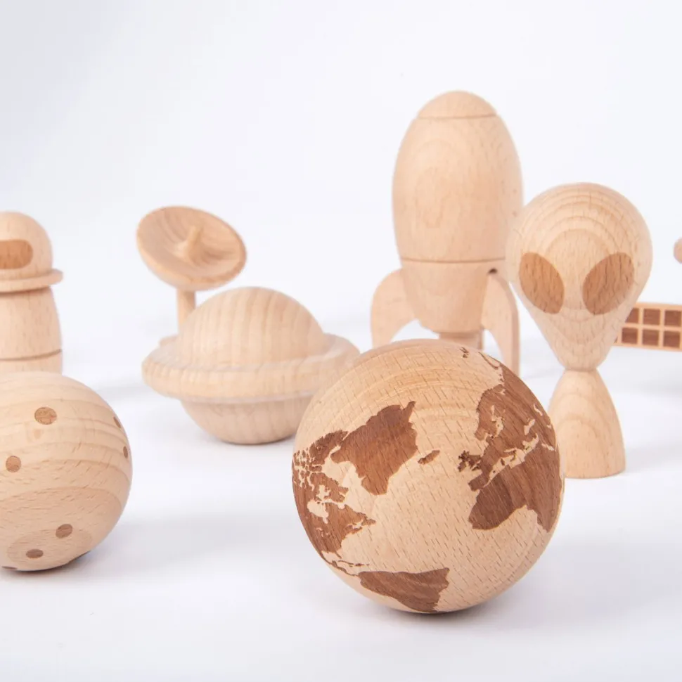 Ladt Zu Gesprachen Uber Raumfahrt Ein, Wobei Der Wortschatz Deines Kindes Gestarkt Wird.Dein Kind Wird Die Feinen Details Der Figuren Mit Dem Teleskop Konzentriert Studieren.Ihr Konnt Euch Uberlegen, Ob Ihr Die Holzfiguren Bemalen Wollt.
