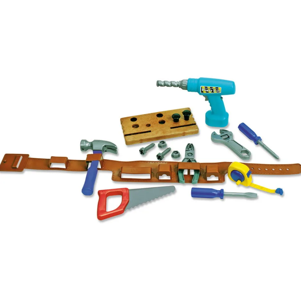 Das Set Enthalt: Sage, Masband, Hammer, Schraubendreher, Schraubenschlussel, Zange, Muttern Und Bolzen, Holzbrett Für Schrauben, Werkzeuggurtel, Akkubohrmaschine Und Einen Smarten Aufbewahrungskoffer Mit Den Masen 30,5 Cm X 35,5 Cm. Der Bohrer Verwendet 2 Aa-Batterien (Nicht Im Lieferumfang Enthalten).