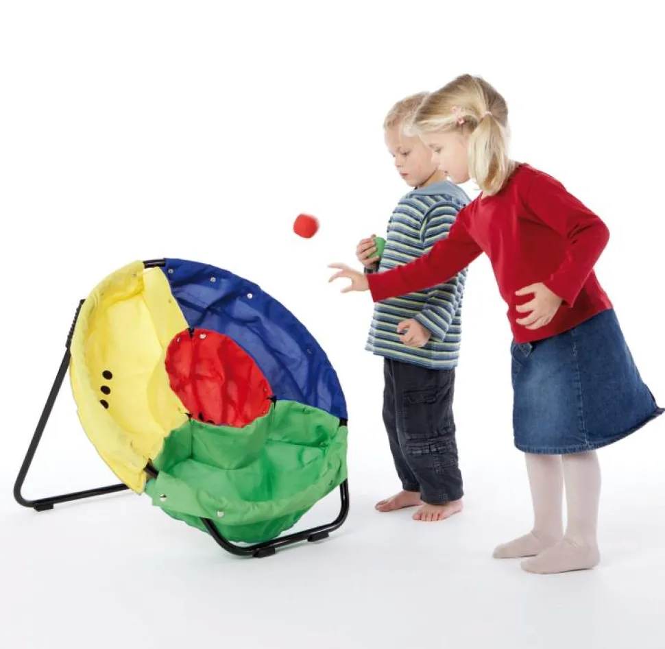 Hand-Auge-Koordination, Korperwahrnehmung Und Spiel. Kinder Konnen Spielen Und Konkurrieren, Wahrend Sie Einige Wichtige Fahigkeiten Uben.Die „Zielscheibe“ Mit Taschen In Vier Farben (Rot, Gelb, Grun Und Blau) Ladt Zu Verschiedenen Spielen Ein.Konnen Die Kinder Mit Den Roten Kugeln Die Rote Tasche Treffen? Das Spiel Kann Auch Darum Gehen, Dass Es Für Das Treffen Der Tortaschen Verschiedene Punkte Gibt. Lass Die Rote Tasche In Der Mitte „Bulls Eye“ Sein Und Gib Für Sie Die Meisten Punkte, Für Die Grune Tasche Die Wenigsten Punkte Usw. Gleichzeitig Gibt Es Den Alteren Kindern Die Moglichkeit Zu Zahlen Und Zu Rechnen.In Den Taschen Befinden Sich Punkte, Die Auf Zahlen Bzw. Schwierigkeitsstufen Hinweisen.Ideal Für Indoor- Und Outdoor-Spiele.Das Wurfspiel Enthalt:Groser Rahmen Mit „Zieltaschen“6 Weiche JonglierBälle In Verschiedenen Farben (2 Rote, 2 Blaue Und 2 Grune)Material: „Zieltaschen“ Aus 100 % Polyester. Metallrahmen.Mase: O: 70 Cm, H: 67 Cm, Gewicht: 5,1 Kgalter: Von 2 – 6 Jahren