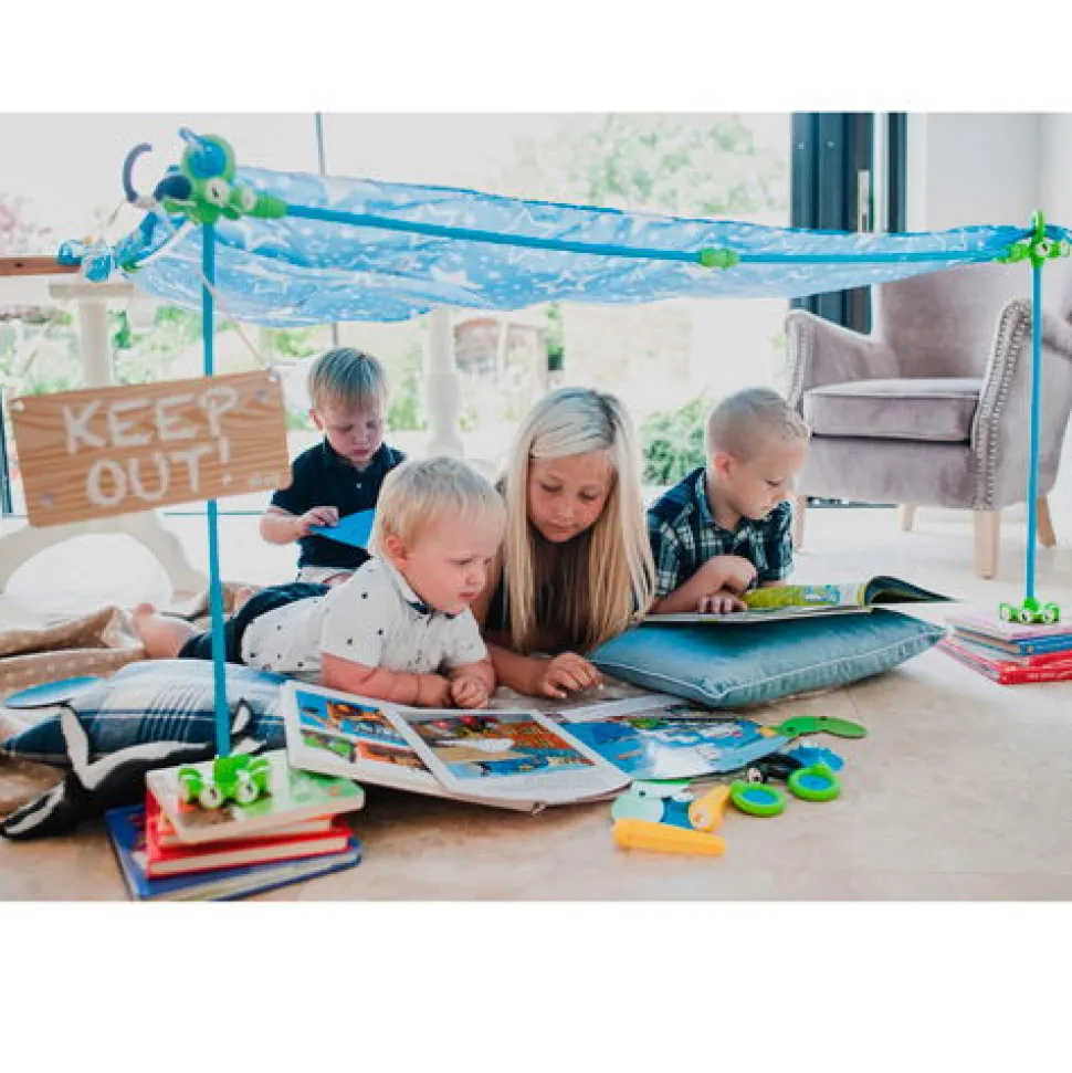 Die Verschiedenen Elemente Im Zelt-Kit Super Konnen Zum Verankern Und Befestigen Von Laken, Decken Und Ahnlichem Verwendet Werden.Die Kinder Konnen Daher Den Altmodischen Hohlenbau Vergessen, Bei Dem Sie Versucht Haben, Vier Stuhle Mit Einer Tischdecke Zu Drapieren, Und Dann Die Daumen Gedruckt Haben, Dass Die Decke Nicht Nach Unten Rutscht.